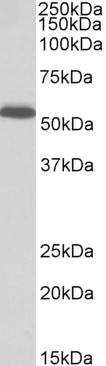 Western Blot Approx 55kDa band observed in Human Skin and Umbilical Cord lysates (calculated MW of 48.0kDa according to NP_002584.2). Recommended concentration