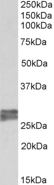 Western Blot Approx 27+28kDa bands observed in Human Heart lysates, 24 +28kDa in Mouse Heart lysates and 28kDa in Rat and Pig Heart lysates (calculated MW of 24.0kDa according to NP_000354.4). The observed molecular weights correspond to earlier finding