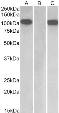 Western Blot In transfected HEK293 transiently expressing Human Furin (myc and DYKDDDDK tagged), a band of approx. 110kDa is observed. No bands are observed in mock-transfected HEK293 and the same band is observed using anti-myc antibody. Recommended c
