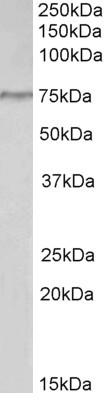 Western Blot Approx 75kDa band observed in lysates of cell line Hela (calculated MW of 73.2kDa according to NP_083157.1). Recommended concentration