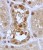 | Immunohistochemistry | In paraffin embedded Human Kidney shows membrane and nuclear stains in epithelial cells of DCT. Recommended concentration, 2-4µg/ml. |