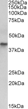 Western Blot Approx 43kDa band observed in Human cancer lysates of Breast, Pancreas and Colon (calculated MW of 44.1kDa according to NP_002267.2). Recommended concentration