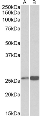 Western Blot Approx 26kDa band observed in Human and Pig Heart, Kidney and Liver lysates (calculated MW of 25.0kDa according to NP_004896.1). Recommended concentration