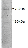 Western Blot Approx 76+30kDa bands observed in Porcine MII Oocytes lysates (calculated MW of 75.5kDa according to XP_003127548.3). Recommended concentration