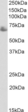 Western Blot Approx 65kDa band observed in Human Testis lysates (calculated MW of 50.2kDa according to NP_059523.2). The observed aberrant MW may be explained by the acetylated form of the protein. Recommended concentration