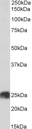 Western Blot Approx 25kDa band observed in Human Heart lysates (calculated MW of 28.9kDa according to NP_001679.2). The observed molecular weight corresponds to earlier findings with different antibodies from other commercial sources. Recommended concen