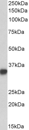 | Western Blot | Approx 33kDa band observed in Human Tonsil lysates (calculated MW of 33.5kDa according to NP_001020330.1). Recommended concentration |
