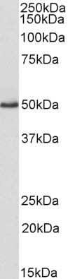 Western Blot Approx 50kDa band observed in Human Platelets lysates (calculated MW of 39.8kDa according to NP_003361.1). The observed molecular weight corresponds to earlier findings in literature with different antibodies (Reinhard et al, EMBO J. 1992 J