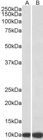 Western Blot Approx 10kDa band observed in lysates of cell lines HeLa and HepG2 (calculated MW of 10.9kDa according to NP_002148.1). Recommended concentration