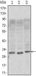 Supplied As Lyophilized Powder from 100µl of Ascitic fluid containing 0.03% sodium azide. ;