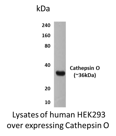 Specificity This antibody was selected for its ability to detect human Cathepsin-O protein.