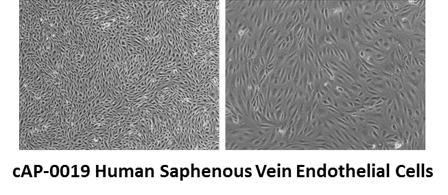 | HSVECs (cAP-0019) cells were isolated from normal human Saphenous Vein. The cells are shipped in frozen vials (the cells are provided @ passage 3). Endothelial Growth Medium (EGM, contains 10% serum and growth supplements, cAP-02) is recommended for cell culture and these cells have a minimum average population doubling levels > 16 when cultured following the detailed protocol described below). |
