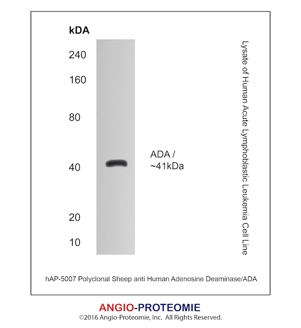 Preparation This antibody was produced from a sheep immunized with purified human Adenosine Deaminase/ADA protein.