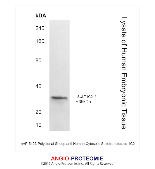 Home Page > ANTIBODY > MONOCLONAL ANTIBODY > Anti-Human Antibody >  Sheep Polyclonal anti-human Cytosolic Sulfotransferase 1C2 (SULT1C2)