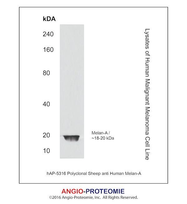 Preparation This antibody was produced from a sheep immunized with purified human Melan-A/MART-1 protein.