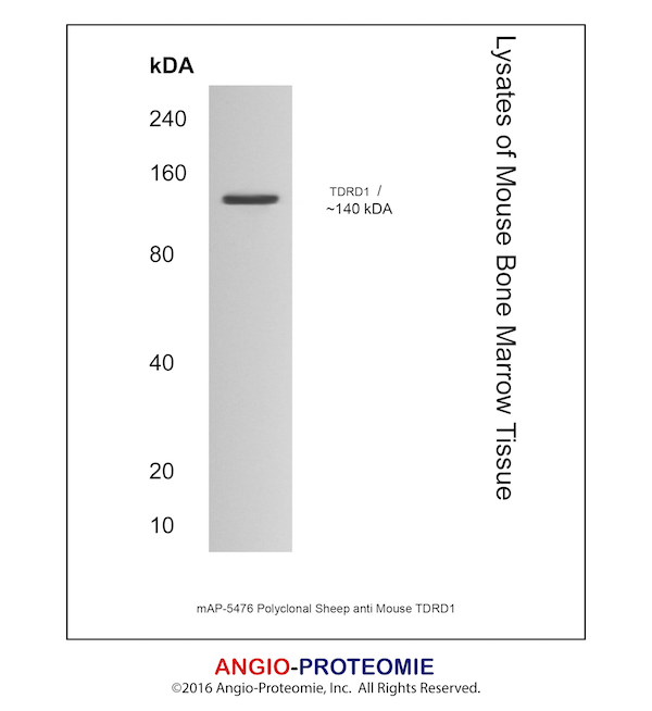 Specificity Detects mouse TDRD1 in direct ELISAs and Western blots. In direct ELISAs, approximately 60% cross-reactivity with recombinant human TDRD1 is observed.