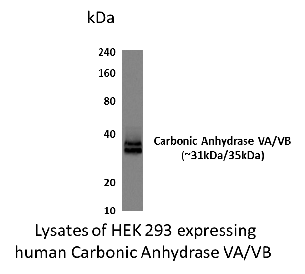 Specificity This antibody recognizes human CA5A/5B in direct ELISA and WB.In Western blots, no cross-reactivity with recombinant human CA1, 4, and CA6 to CA14is observed.