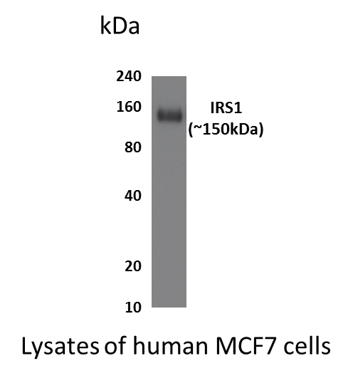 Preparation This antibody was produced from a hybridoma (mouse myeloma fused with spleen cells) from a mouse immunized with Recombinant human Insulin receptor substrate 1 (IRS1).