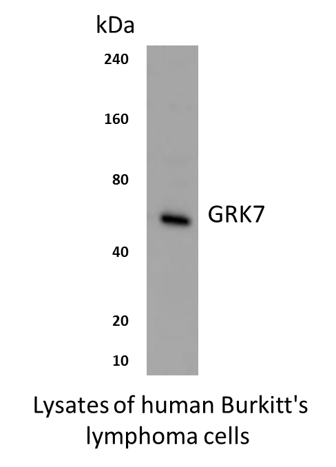 Preparation This antibody was produced from a hybridoma (mouse myeloma fused with spleen cells) from a mouse immunized with recombinant human GRK2 (G protein-coupled receptor kinases 2). GRK7 is a member of the rhodopsin kinase or visual GRK subfamily.