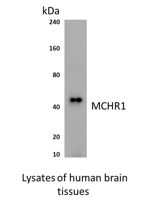 Preparation This antibody was produced from a hybridoma (mouse myeloma fused with spleen cells) from a mouse immunized with recombinant human MCHR1 (melanin-concentrating hormone receptor-1). MCHR1 is also called GPR24 (G-protein coupled receptor 24) or SLC1 (somatostatin receptor-like 1) and is an approximately 44kDa, seven-transmembrane receptor for MHC