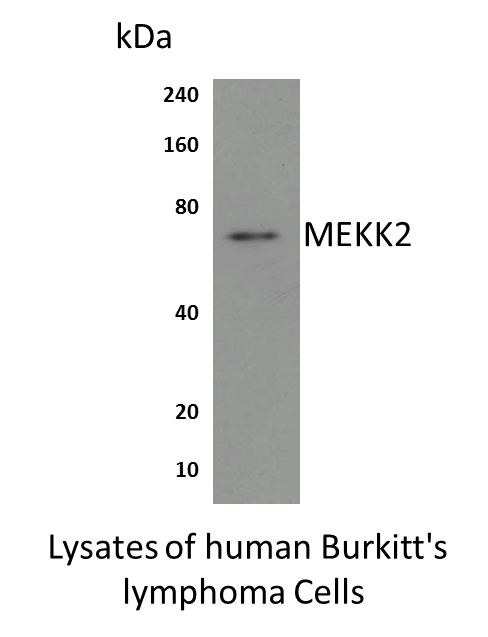 Preparation This antibody was produced from a hybridoma (mouse myeloma fused with spleen cells) from a mouse immunized with recombinant human MEKK2 (MAPK/ERK kinase kinase 2). MEKK2 is a widely expressed 70kDa member of the MEKK/STE11 subfamily of Ser/Thr kinases.