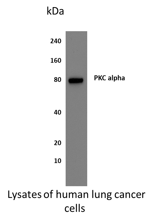 Preparation This antibody was produced from a hybridoma (mouse myeloma fused with spleen cells) from a mouse immunized with recombinant human PKC alpha (Protein kinase C alpha). PKC alpha is an 80kDa member of the PKC subfamily, AGC Ser/Thr protein kinase family of enzymes.