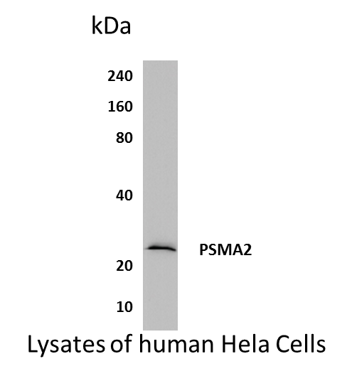 Preparation This antibody was produced from a hybridoma (mouse myeloma fused with spleen cells) from a mouse immunized with Recombinant human PSMA2 (Proteosome subunit alpha type-2). PSMA2 is also called proteasome component C3 and Macropain subunit C3 and is an intracellular 25-27kDa member of the peptidase T1A family of molecules