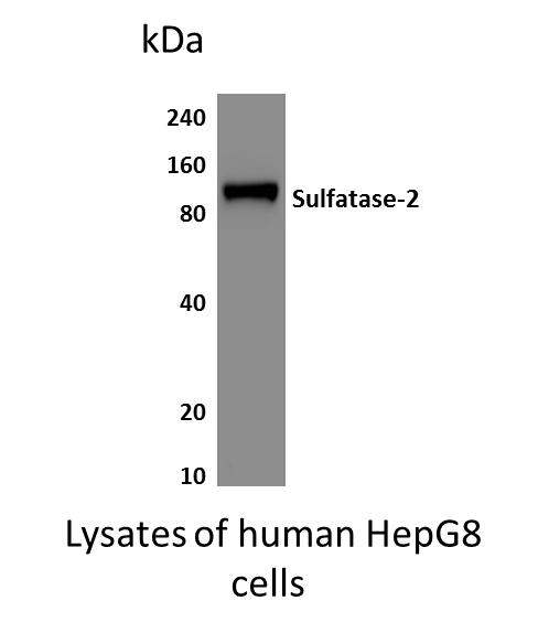 Preparation This antibody was produced from a hybridoma (mouse myeloma fused with spleen cells) from a mouse immunized with Recombinant human Sulfatase-2. Sulfatase 2 is a 132kDa calcium-binding glycoprotein that is one of two extracellular sulfatases (SULFs).