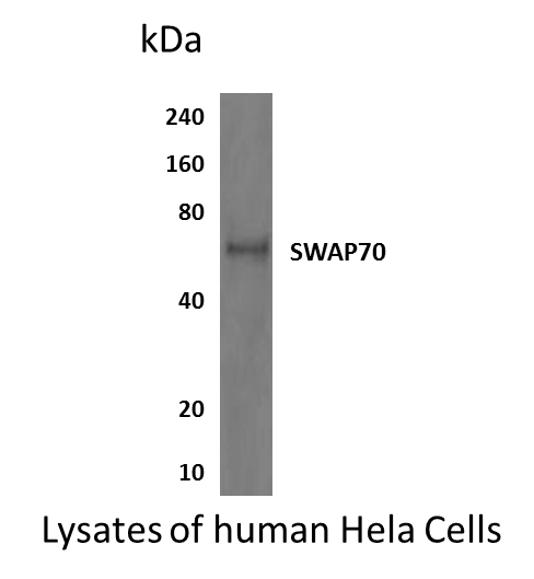 Specificity This antibody recognizes human SWAP70 in direct ELISAs and WBs. It cross reacts with mouse SWAP70 in WBs