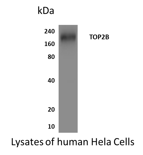 Preparation This antibody was produced from a hybridoma (mouse myeloma fused with spleen cells) from a mouse immunized with Recombinant human TOP2B (DNA Topoisomerase II beta). TOP2B is an 180-185kDa member of the type IIA subfamily, topoisomerase family of molecules.