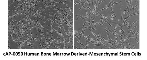| HBMMSCs (cAP-0050) are isolated from human Bone Marrow tissues and demonstrated with spindle-shaped-, and fibroblast-like cells. Each lot of cAP-0050 is tested to ensure the cells can be passaged at least three times (i.e., approximately 9 to 10 population doublings) after thaw in complete growth media (Mesenchymal Stem Cell Growth Medium (MSCGM), cAP-35), when cultured following the detailed protocol described below). |