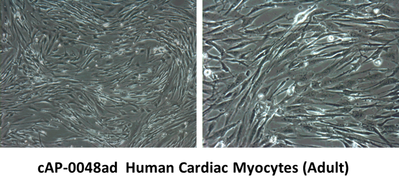 | Human Cardiac Myocytes (HCarMyo-ad, cAP-0048ad) are isolated from adult human heart tissue and shipped in a frozen vial (> 5 x 10[5] cells/vial). Cardiac Myocytes Growth Medium (cAP-41, containing 10% Fetal Bovine Serum, and supplement factors) is recommended for cell culture. HCarMyo-ad cells have limited capacity for proliferation, and we do not recommend the long-term culture of HCarMyo-ad. |